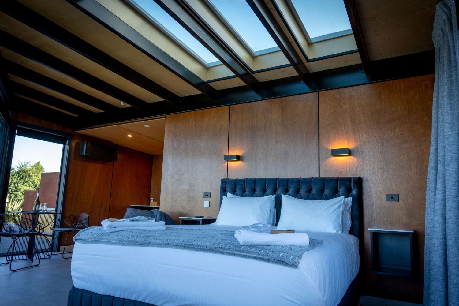 Ngā Whare Mānatu is a unique retreat offering luxury accommodation above the beautiful boutique village of Geraldine, nestled amongst native plants with stunning birdsong and views out to the East Coast. Relax in your hot tub and enjoy the wonders of the stars then continue to view this magic from your bed through the large ceiling skylights.
