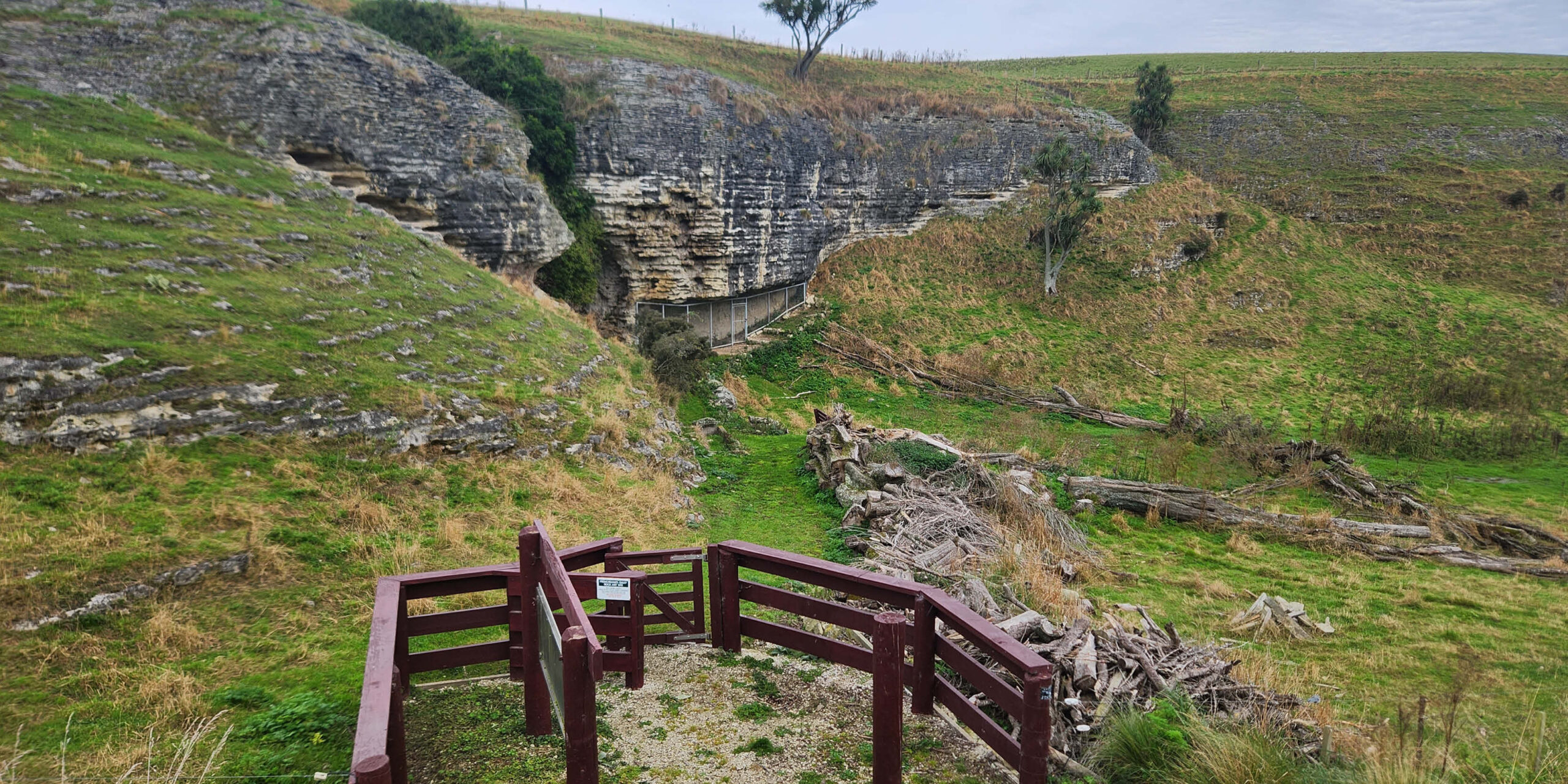 From Timaru, head south on SH1 turning right onto Beaconsfield Road. Stay on Beaconsfield Road for approximately 13kms, turn left onto Holme Station Road and then take the first right onto Pareora River Road. Carry on along Pareora River Road which will turn into Pareora Gorge Road. You will travel up and over the windy Pareora River Gorge, once you exit this section of road, turn left onto Limestone Road. Stay on Limestone Road for approximately 3.5kms and turn left onto Moa Road. The carpark for the site is located right at the end of Moa Road. Park on the side of the road, and climb over the turnstile and onto the track.